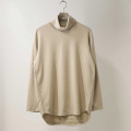DETAIL/ インナーとしての着用を考えたコンパクトなシルエットのTシャツ。定番のクルーネックに並び今シーズン初のタートルネックでの展開。ネック部分はフライスを使わずに共地仕様にすることで抜け感を演出。裾も緩くラウンドさせています。25AWシーズンは袖口幅を若干狭くしています。素材の良さを堪能するためにデザインはあくまでもミニマルに仕上げています。カップルやご夫婦で兼用も可能です。