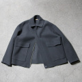 素材は上質なウールとして知られる[SUPER140]のウールメルトンを使用。見た目にも高級感ありながら、防寒性にも優れ、尚且つ滑らかでフリースの様な柔らかい着用感が特徴です。このモデルは、数シーズンご好評を頂いておりました[ WOOL OVER BLOUSON (SUPER140)]の後継モデルの様な位置付けで、これまでの素材感の良さを活かしながら、デザインをアップデートして、さらにバージョンアップしたモデル。