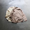 バンドカラーのシンプルなシャツ。 オーバーサイズのリラックスしたシルエットですので、夏の暑い時期のちょっとした羽織としても使えます。 フロントが比翼になってスッキリ見えるデザインが印象的。サイドにシームポケットが付いたディティールは、ライトアウター感覚で着用して頂けます。 滑らかなインド綿のポプリン生地はフワッとした質感で、温かみのあるカラーリングやストライプが入ったブルー等、夏のスタイリングのアクセントになりそうな色合いが目を引きます。定番の白も1着あると定番的に着回せます。高級感のあるシェルボタンもシャツの上品な雰囲気を高めてくれています。 女性が着ても面白い見えた方になりますので、年齢・性別問わず楽しんで頂けるコレクションです。 |