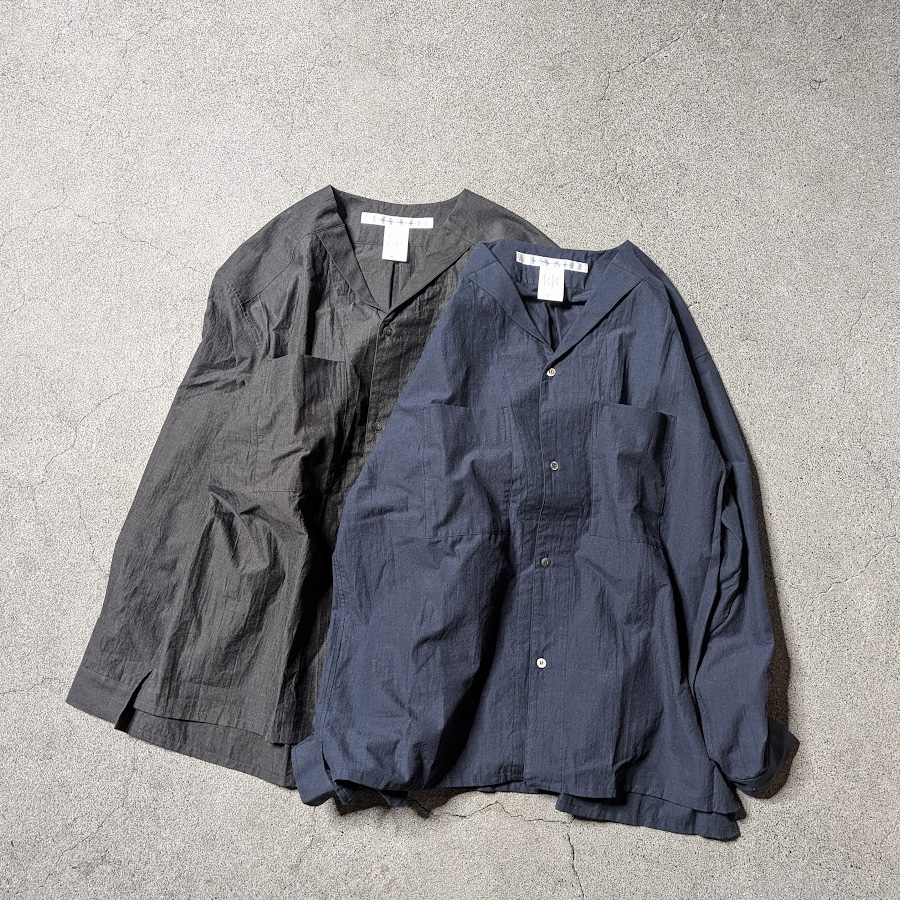 1950年代のクラシックなオープンカラーシャツを[SEEALL]のオリジナル生地で再現しています。 経糸にコットン、緯糸にコットン/ナイロンを使用した職人の技術の高さが感じられる二重織生地です。 一般的なサッカー生地とは違う独特な凹凸が、生地のテキスタイル感をミニマルに表現しており、機能としても肌離れがよく、春夏に最適な素材です。 オープンカラーとリラックス感のある身幅にゆとりのあるボックスシルエットが特徴。ヴィンテージの雰囲気を残しつつ、SEEALLらしいクリーンな仕上がりを兼ね備えた、暑い時期の羽織りに最適なシャツジャケットです。 昨今のゆったりとしたシルエットのトレンドも相まって、カップルやご夫婦で兼用も可能です。
